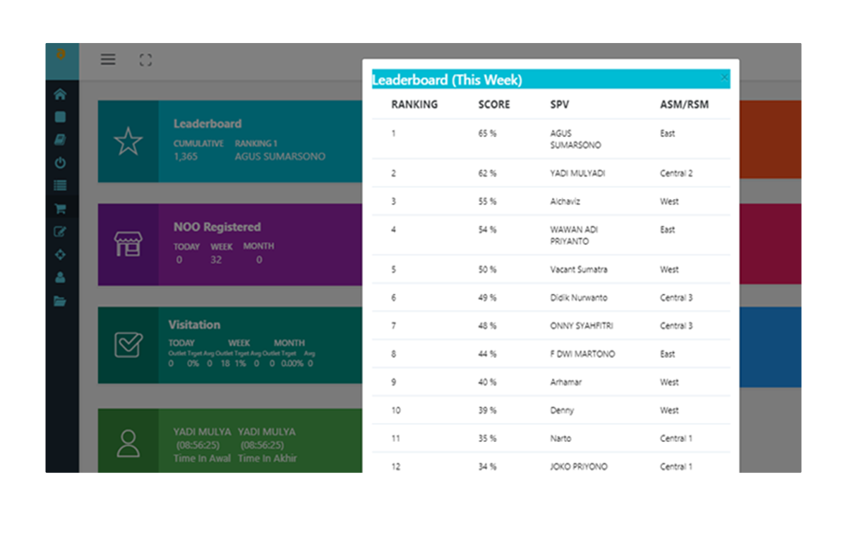 Sales Organization: Keep track of Attendance, Monitor Performance, Effective Work hours, Summary Report and Sales Ranking for sense of achievement